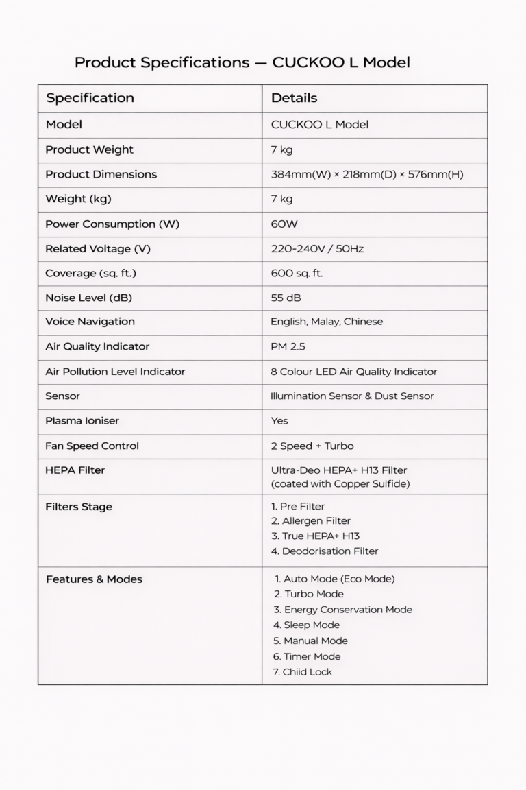 – Improves air quality and reduces levels of viruses. - Ultra-Deo HEPA+ H13 Filter with Copper Sulfide